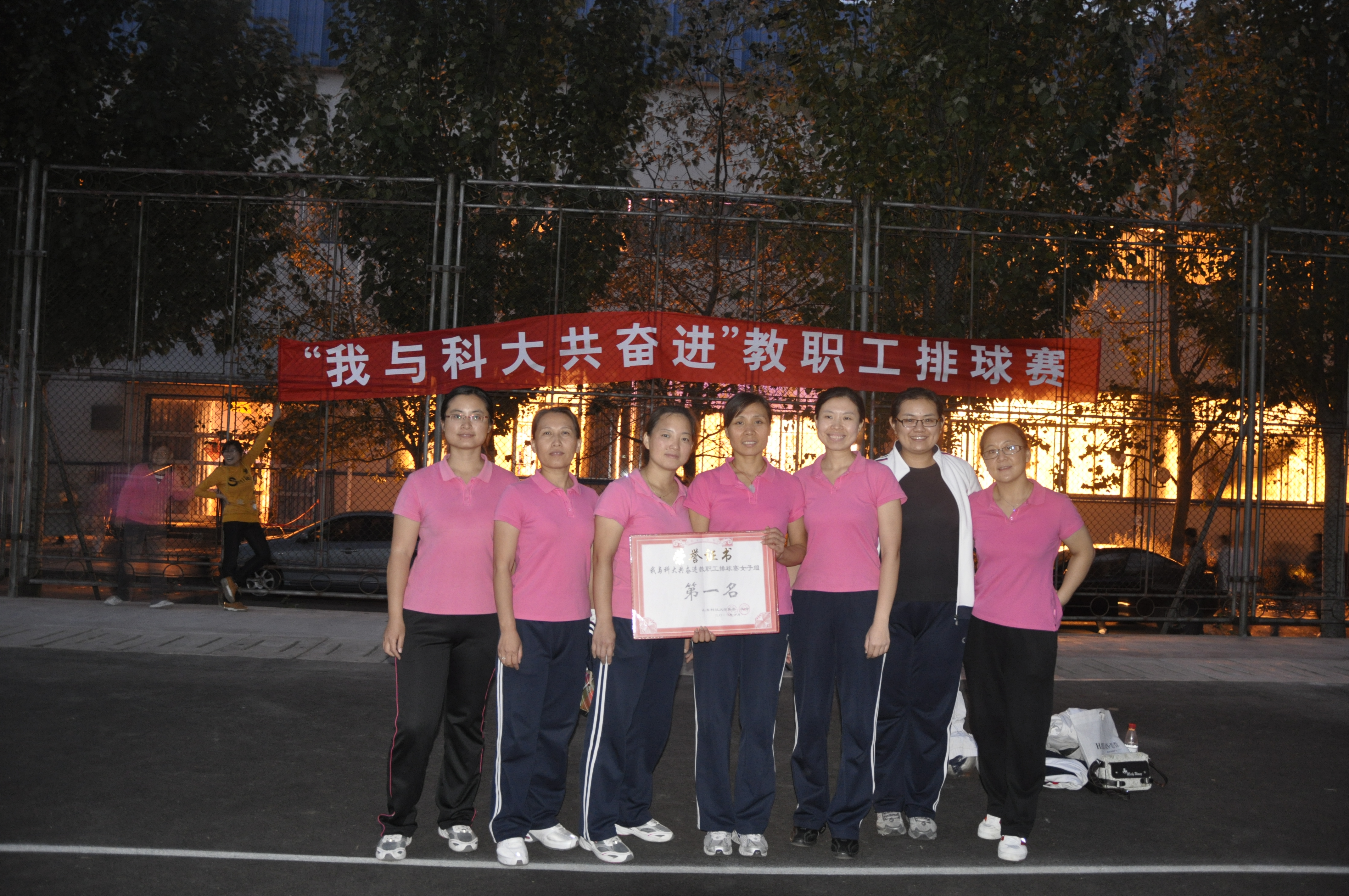 10月9日,学校“我与科大共奋进”教职工排球赛顺利闭幕,beat365中国唯一官方网站教职工排球队再次获得优异成绩。女排蝉联冠军,男排获得第三名。