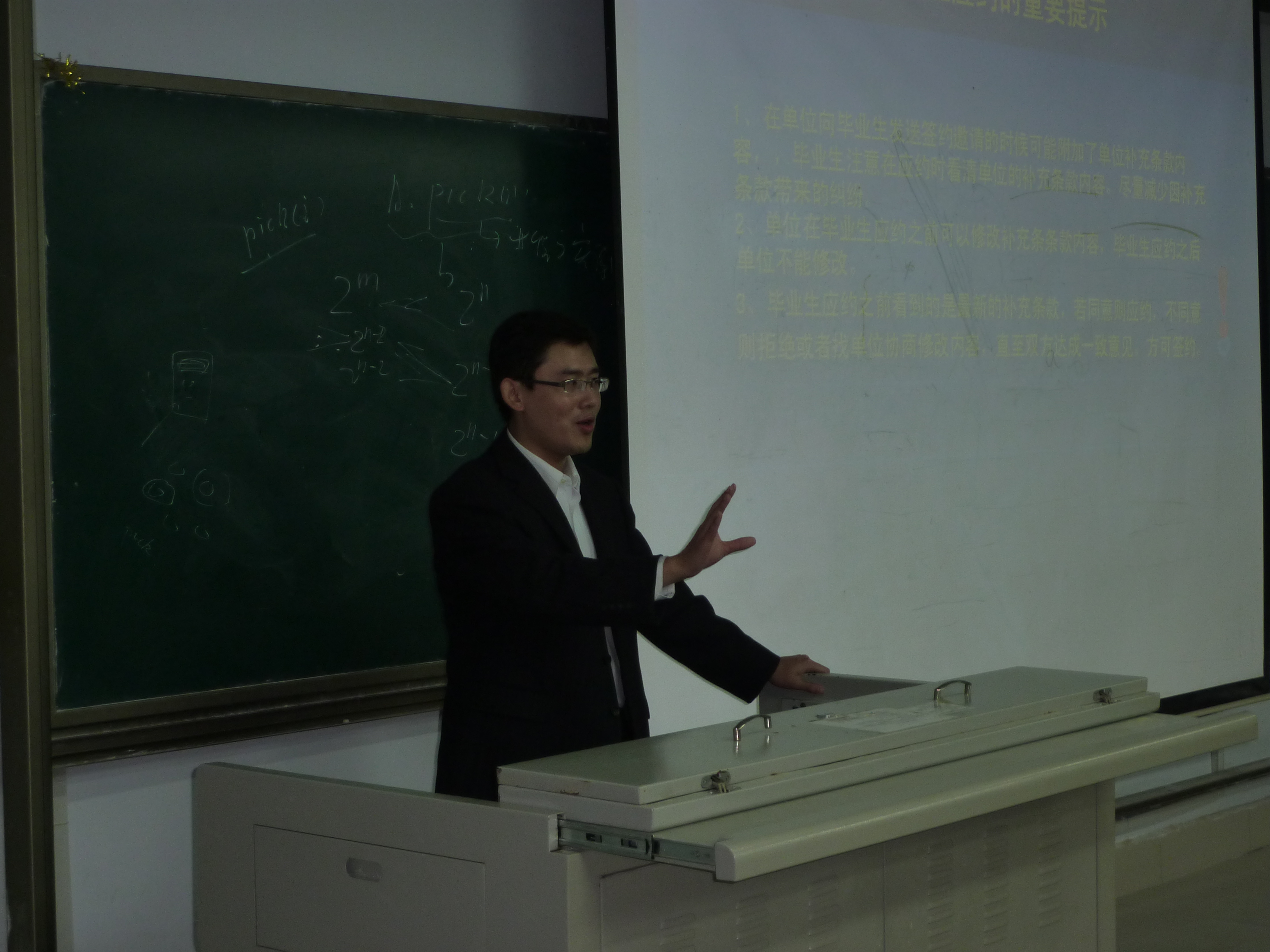 11月11日,校就业中心指导主任刘亮亮在S楼303多媒体教室为beat365中国唯一官方网站的2011届毕业生作了主题为“就业信息系统使用”的讲座。