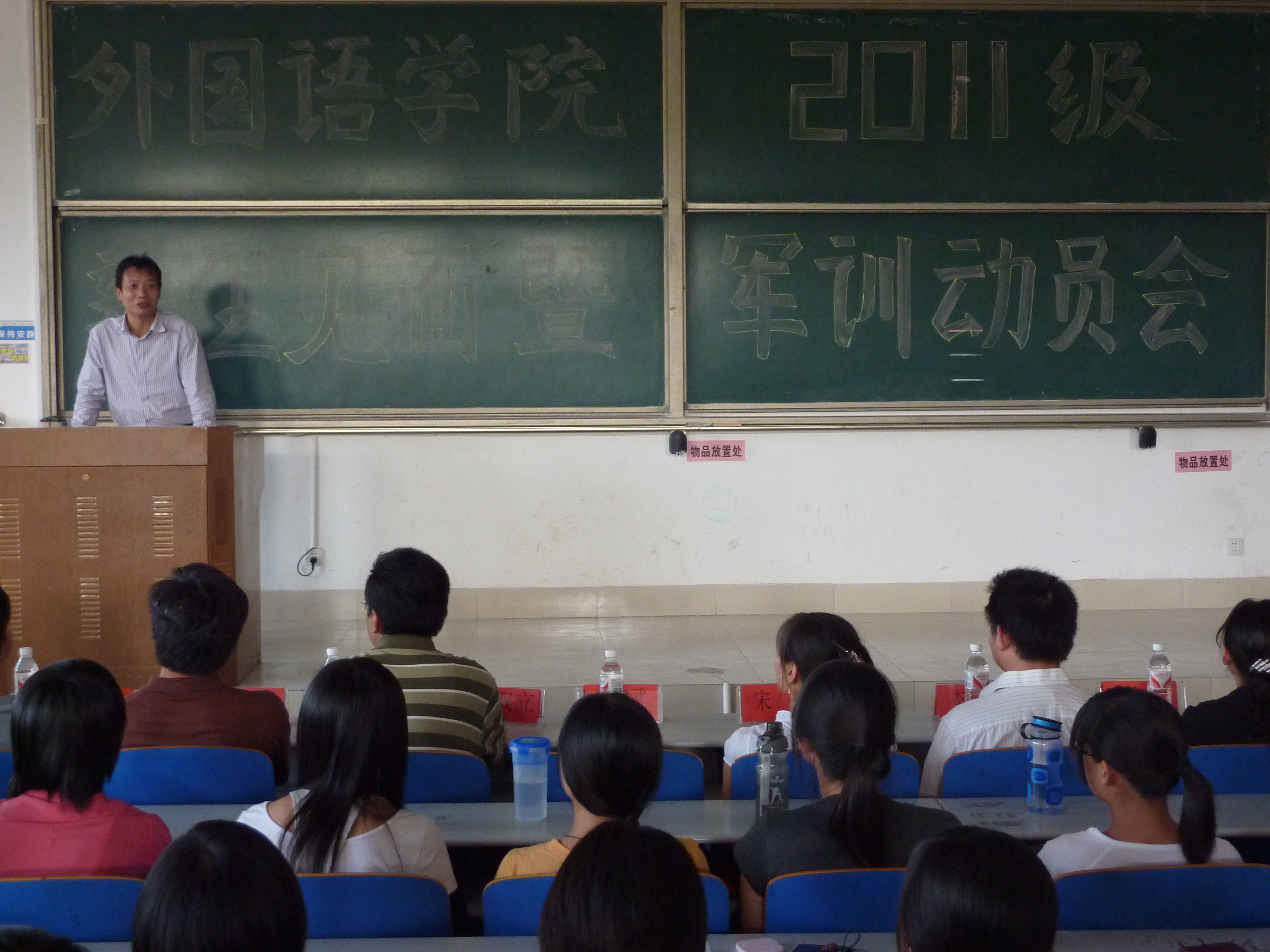 9月4日下午,beat365中国唯一官方网站2011级新生见面会暨军训动员会在一号楼228教室隆重举行。beat365中国唯一官方网站党委书记李双立副教授、院长彭建武教授,副院长宋燕副教授、宋建福教授、陈士法教授和日语系主任李守波老师、教师代表翟红华教授、团委庞晖老师,2011级新生辅导员周姗姗老师和beat365中国唯一官方网站2011级新生参加了见面会。会议由团委书记杜中华主持。