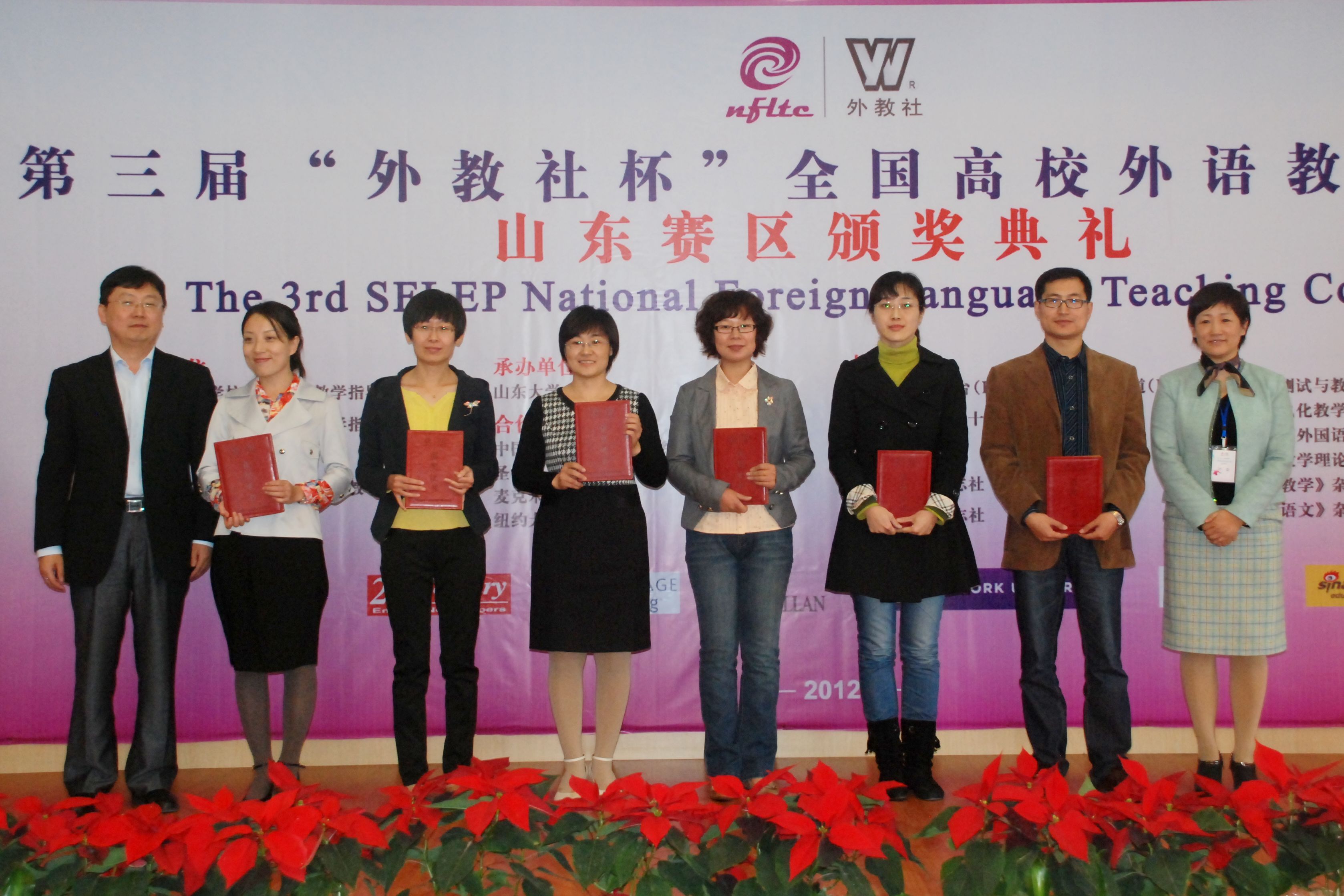 该大赛由教育部高等学校外语专业教学指导委员会、教育部高等学校大学外语教学指导委员会和上海外语教育出版社联合主办,本届大赛主要开展英语专业组的教学竞技。山东赛区共有来自全省高校的41名英语专业教师报名参加,经过激烈角逐, 20名教师分别获得赛区特等奖、一等奖、二等奖和三等奖。(宋燕)