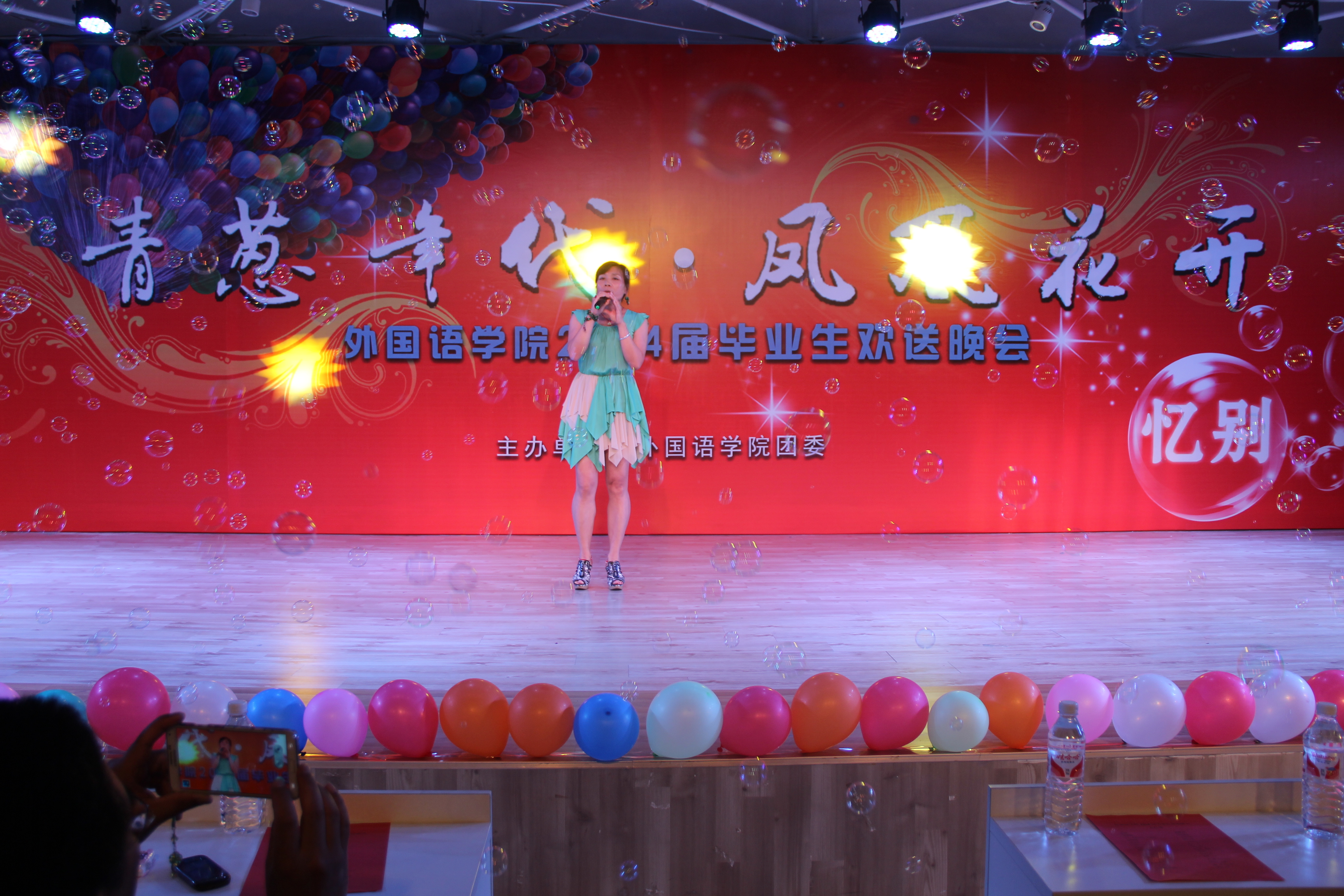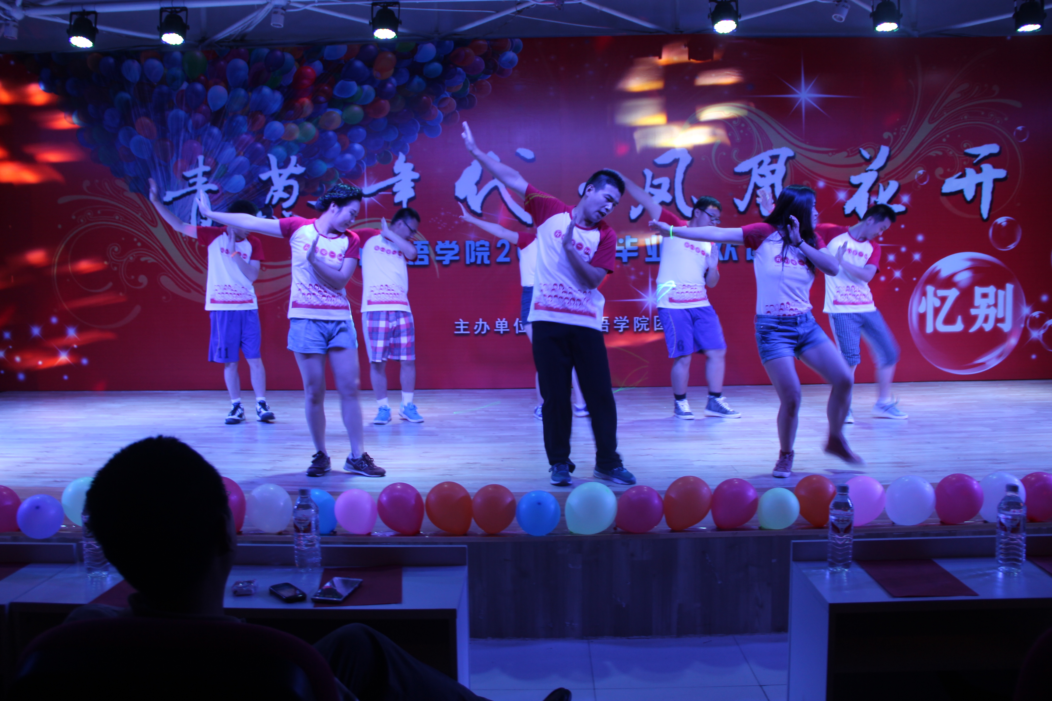 晚会在活力四射的开劲爆热舞中拉开帷幕。青春激昂的歌曲不断唱响,日语1班带来的T台秀将现场带入了高潮。精彩的歌舞串烧,幽默风趣的话剧表演,毕业生们献歌献舞,现场气氛活跃。副院长宋燕送上了对毕业生们最真诚的祝福并演唱了动听的歌曲《我期待》,教师代表马力和现场的毕业生们互动不断,为大家带来了歌曲《背包》。一段毕业生的视频,一个关于他们点滴的PPT,一首动人的朗诵,将所有毕业生们带进了对往昔的追忆、离别的不舍和对未来的憧憬。最后,晚会在英语3班带来的歌曲《祝你一路顺风》中落下帷幕。