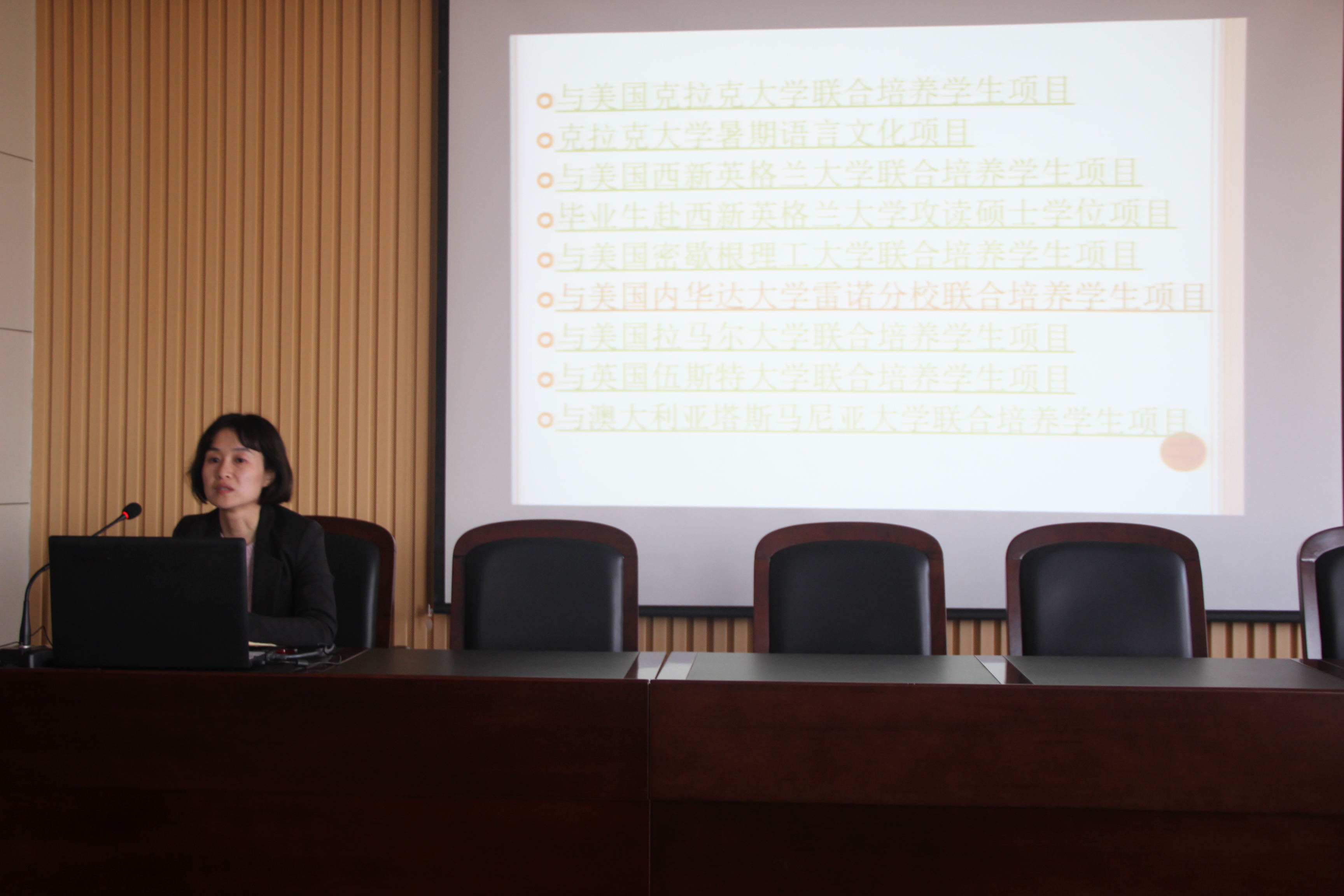3月21日,beat365中国唯一官方网站在学院楼三楼报告厅举办了学生出国留学项目辅导报告,本次报告会特别邀请国际交流处的刘洁老师为同学们作报告,面向beat365中国唯一官方网站英语专业的全体同学。 刘老师首先介绍了我校与各国大学联合培养学生的项目,详细介绍了赴美国克拉克大学、西新英格兰大学等各大学校的基本情况、交流学习的项目、学习时间、学习内容、学费、选拔条件、选拔范围等。随后,刘老师与在座的同学一起交流,并详细解答了同学们对于出国留学方面的疑问。此次活动开拓了同学们的视野,为beat365中国唯一官方网站的同学们提供了更多的留学选择和学习机会。(通讯员:宋美洁)