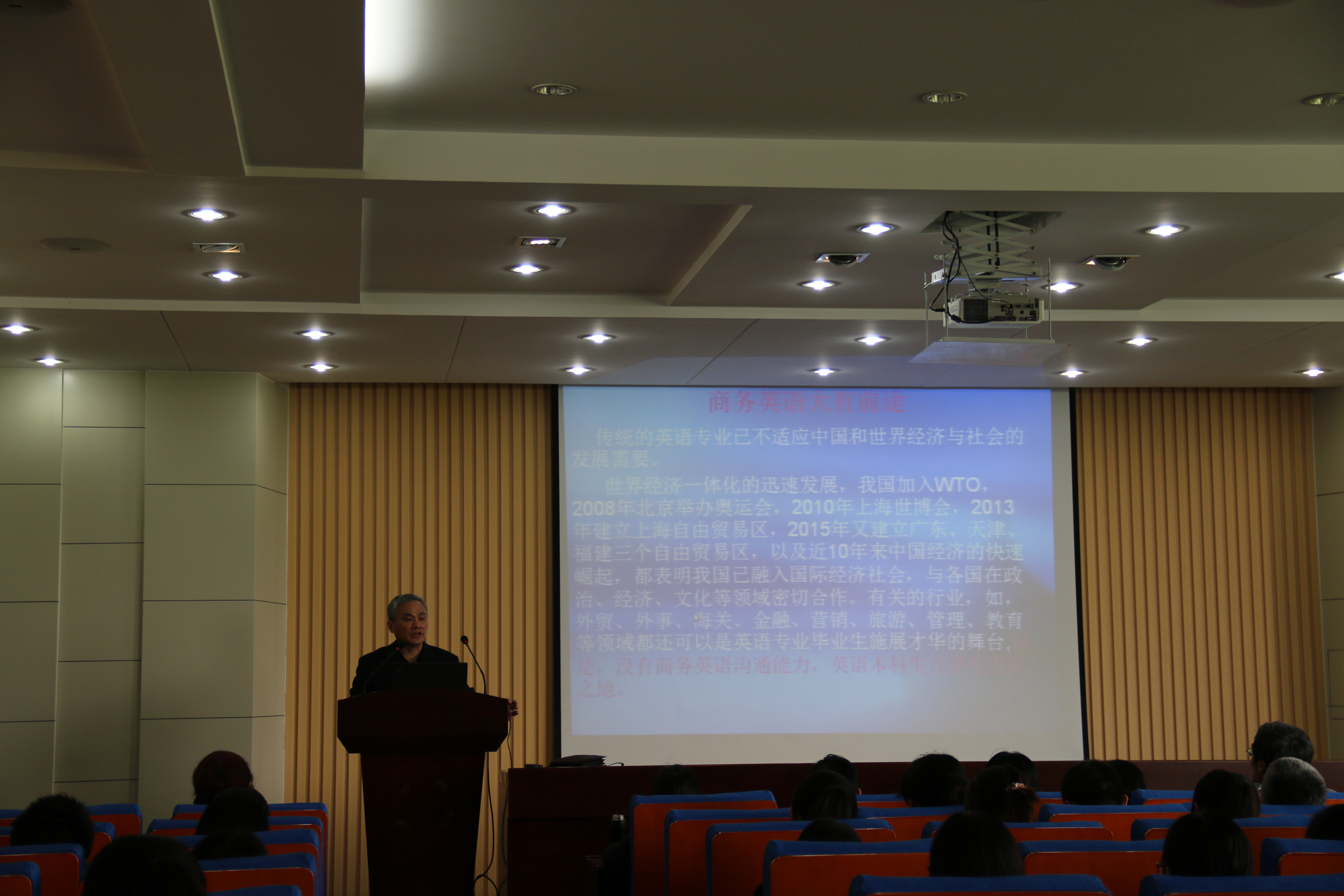 5月7日上午,365官网邀请浙江工商大学刘法公教授来365官网讲座。刘教授是浙江省中青年学科带头人。现任浙江省翻译工作者协会理事;浙江省外文学会副秘书长;中国商务英语研究会常务理事;浙江省高等学校大学外语教学指导委员会副主任委员。 刘法公教授介绍了商务英语重要性和发展前景。本次讲座内容丰富,直观生动。刘教授以多年的教学和研究经验,结合丰富实例,对商务英语教学进行了全方位介绍。(通讯员 冯苗苗)