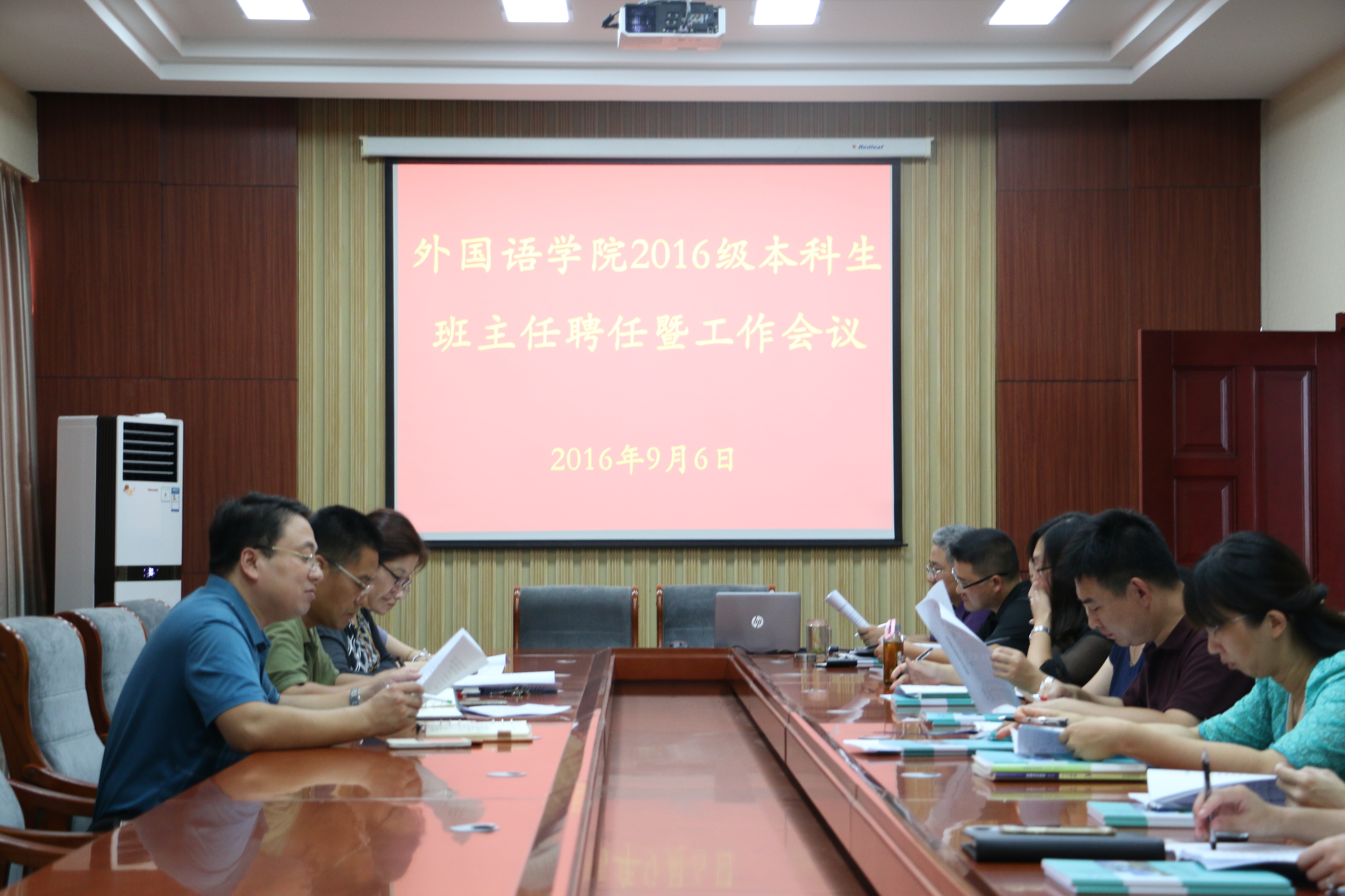 9月6日,beat365中国唯一官方网站召开了2016级新生班主任聘任暨工作会议。beat365中国唯一官方网站党委书记李双立、院长唐建敏、党委副书记马海超、2016级新生辅导员王梦媛以及beat365中国唯一官方网站12位2016级新生班主任参加了此次会议。党委副书记马海超主持了此次会议。