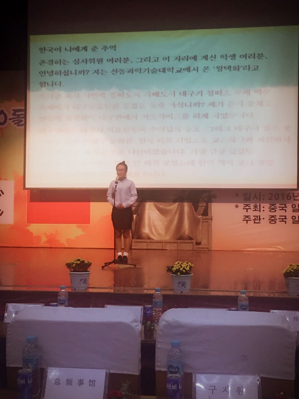 10月12日,由日照市韩国人会·韩国商会主办的“山东省第十二届韩文节韩国语演讲比赛”在日照市山东外国语职业学院隆重举行。此次比赛共有来自山东大学、中国海洋大学、山东师范大学等不同高校的29名选手参加。在紧张激烈的比赛过程中,365官网朝鲜语系王泽华同学发挥出色,荣获“中国日照市韩国人会·韩国商会会长奖(중국일조시 한국인회/한국상회 회장상)”。王泽华同学还获得了免费赴韩文化探访一周的机会。(朝鲜语系供稿)