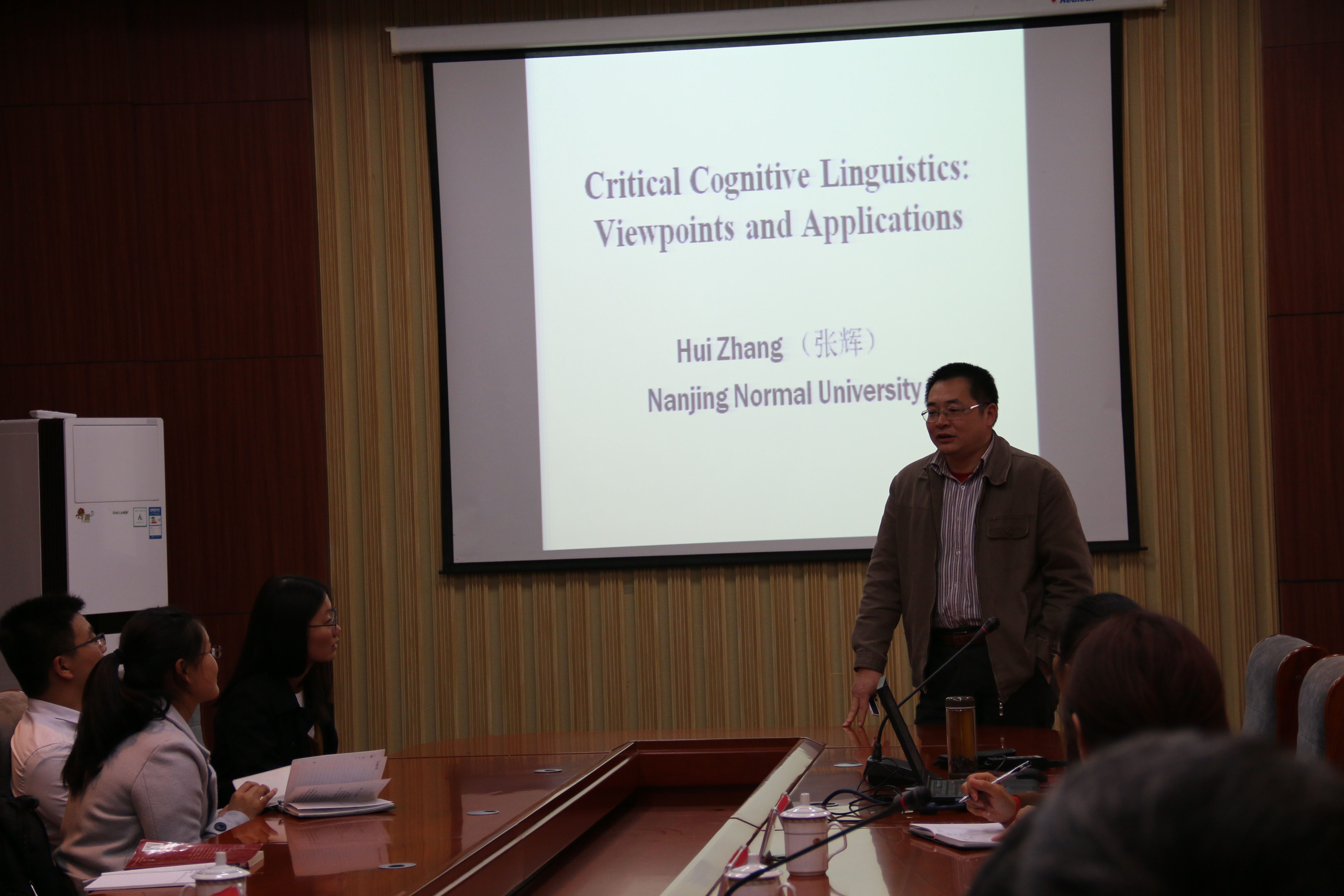聘任仪式结束后,张辉教授开始了他在beat365中国唯一官方网站的“第一堂课”,为师生们做了题为“批评认知语言学——理论和应用”的学术讲座。讲座中,张辉教授结合认知语言学的前沿动态及自身多年研究经验,介绍批评认知语言学理论框架建构的科学性、可行性及基本观点。张辉教授还以自己最新发表在国际期刊上的学术论文为例,阐述该理论框架的实际应用。
