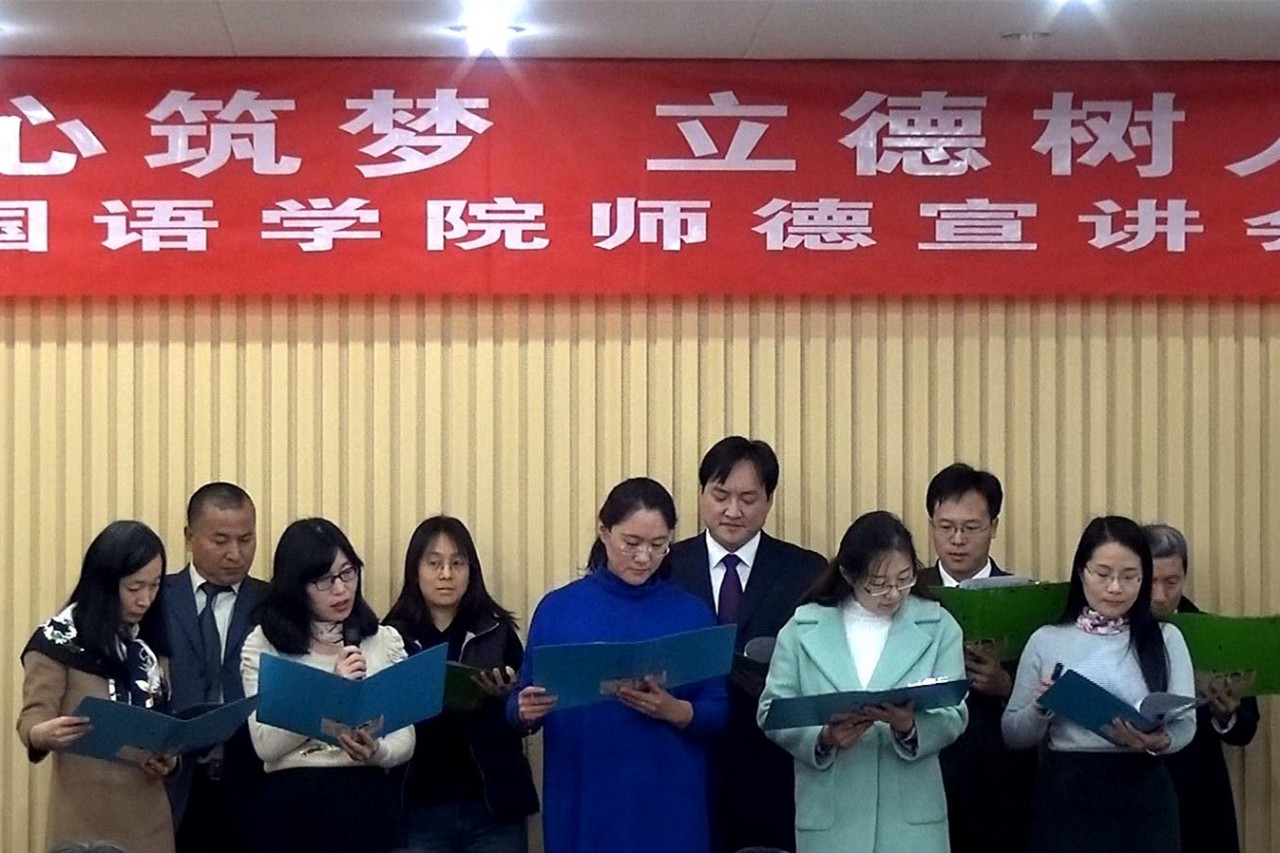 11月22日,beat365中国唯一官方网站举行“同心筑梦 立德树人”师德宣讲会,校党委副书记尹华、党委宣传部部长李克周、校工会主席刘培进、教务处副处长申玉三等与beat365中国唯一官方网站全体教工、部分学生代表一同参加师德宣讲会。