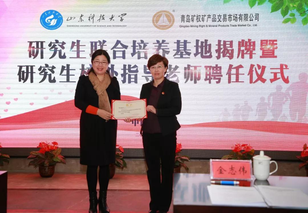 beat365中国唯一官方网站院长唐建敏为青岛矿权矿产品交易市场总裁金志伟颁发研究生校外指导老师聘书