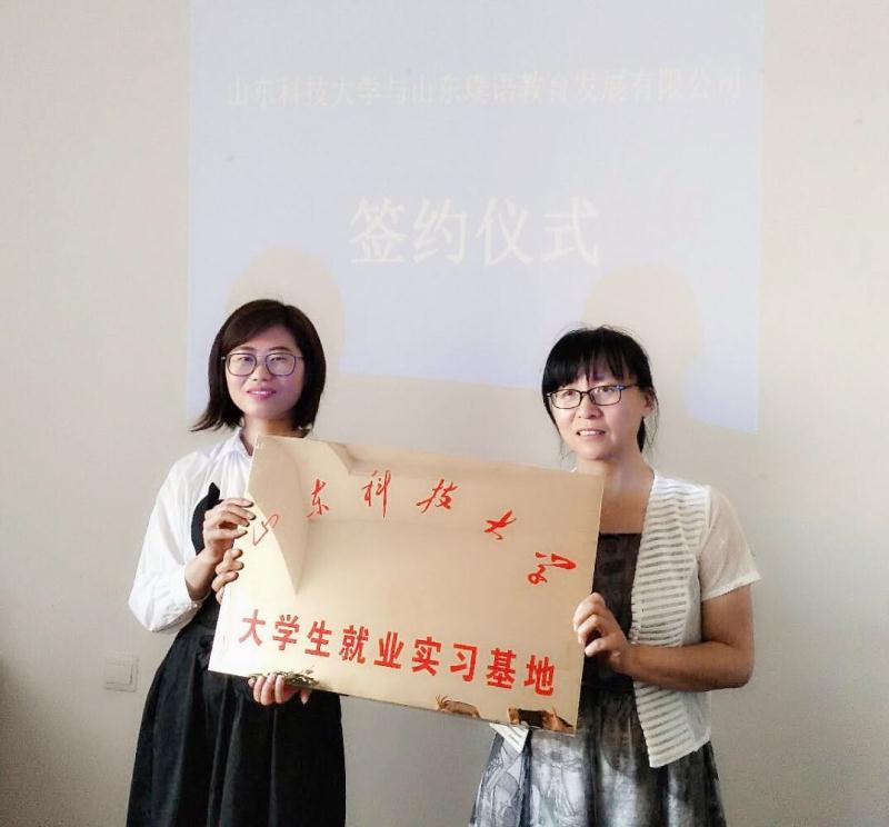 2018年6月29号下午,beat365中国唯一官方网站beat365中国唯一官方网站分别与青岛华译信翻译有限公司和山东璞语教育发展有限公司签订了“学生就业实习教学基地建设合作”协议书,并举行了“翻译实践教学与就业实习基地”挂牌仪式。beat365中国唯一官方网站副院长高艳丽、英语系主任吴桂金、翻译系主任李庆学、英语系副主任陈莹莹以及中国环球自然资源集团公司董事长郭燕、青岛华译信翻译有限公司总经理高卫华、山东璞语教育发展有限公司总经理战文婷等实习单位的相关负责人参加了签约挂牌仪式。