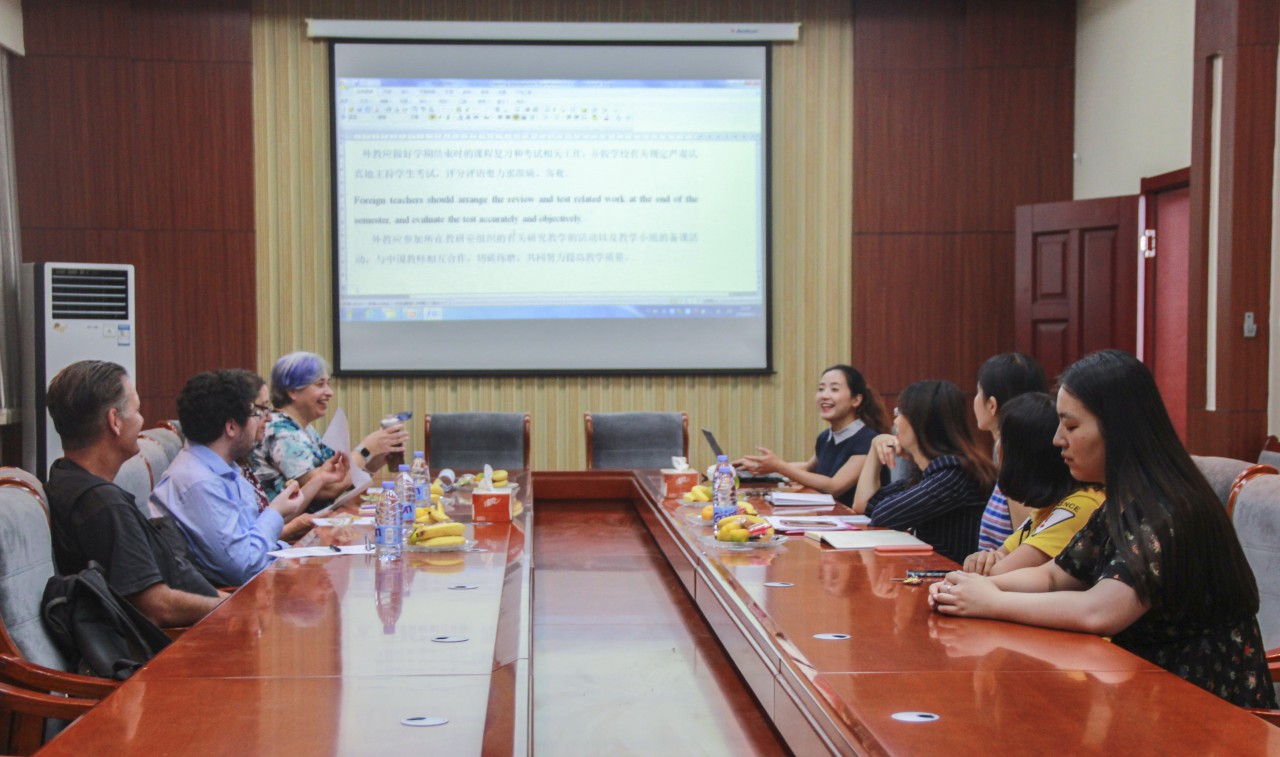 9月12日,beat365中国唯一官方网站在522会议室举行了新学期外教见面会。英语系副主任陈莹莹、翻译系副主任李蕾及外教管理相关人员参加了会议。 见面会上,陈莹莹代表学院对新外教的到来表示了欢迎,在中秋佳节即将到来之际,表达了学院对外教们的中秋祝福。此后,她向外教详细说明了外教日常管理细则,对教学计划、教学内容、考试评分等具体教学工作做出了明确要求,希望外教在完成日常教学的同时,积极参与学生讲座、教师座谈等活动,并建议外教在教学过程中与中国老师多沟通,相互学习,发挥更大作用。 参与见面会的管理人员就外教关心的问题与之进行了沟通和交流,外教对学校工作表示了认可与支持,见面会在一片热烈祥和的气氛中举行。(通讯员:别俊玲)