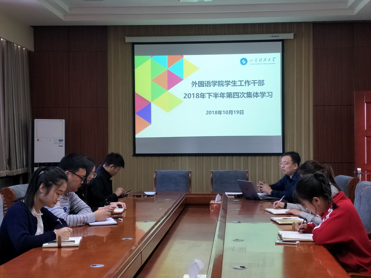 10月19日,beat365中国唯一官方网站组织开展学生工作干部第四次集体学习,学习活动由学院党委副书记马海超主持,学院全体专兼职辅导员参加集体学习。