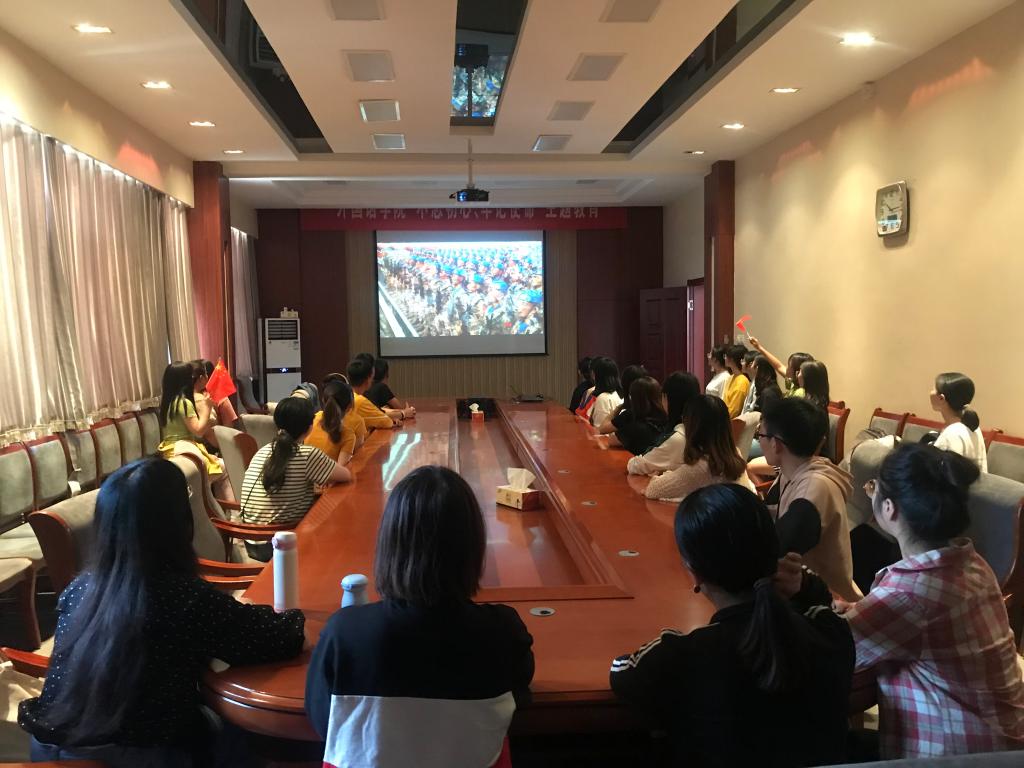为庆祝中华人民共和国成立70周年,10月1日上午,beat365中国唯一官方网站在J3会议室及多媒体教室组织师生共同收看庆祝中华人民共和国成立70周年大会和阅兵式直播。学院领导、全体辅导员及学院部分本科生、研究生观看直播。观看后,师生结合自身和观看直播的直观感受,热议新中国成立70周年大会和阅兵式。