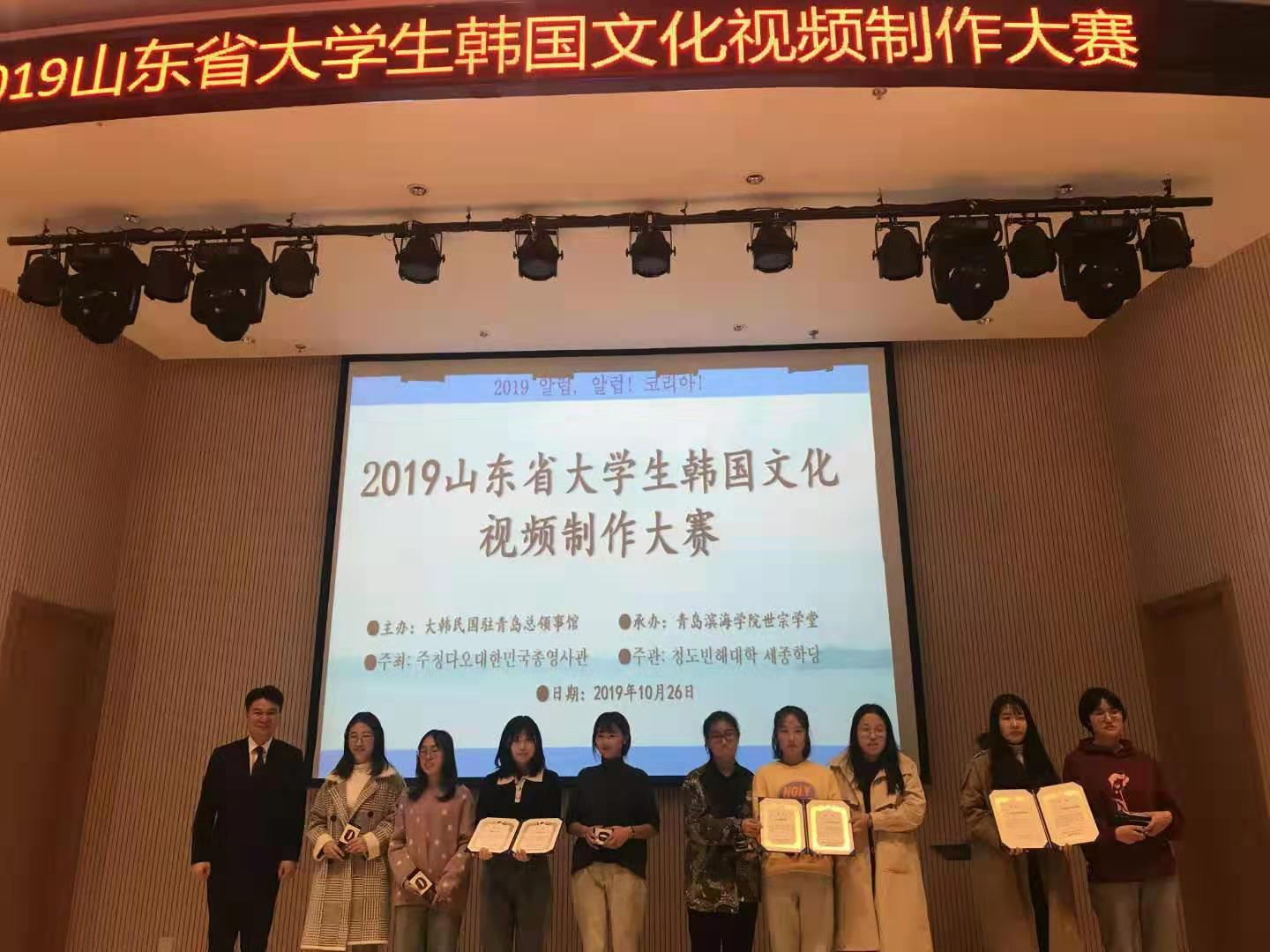 10月26日,365官网朝鲜语系在由大韩民国驻青岛总领事馆主办、青岛滨海学院世宗学堂承办的2019年山东省大学生韩国文化视频制作大赛中获得团体三等奖。朝鲜语系参赛团队通过视频作品介绍了韩国的咖啡文化和饮食文化。 本次韩国文化视频制作大赛为学生提供了良好的展示自我的平台,激发了学生学韩语、讲韩语以及更加深入地了解韩国文化的热情。(通讯员:刘媛)
