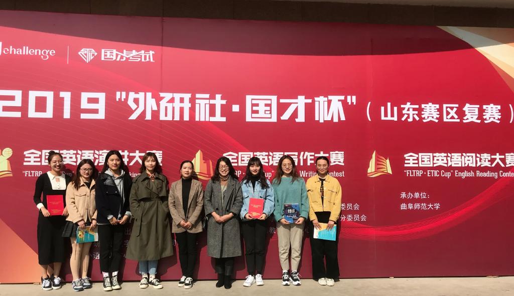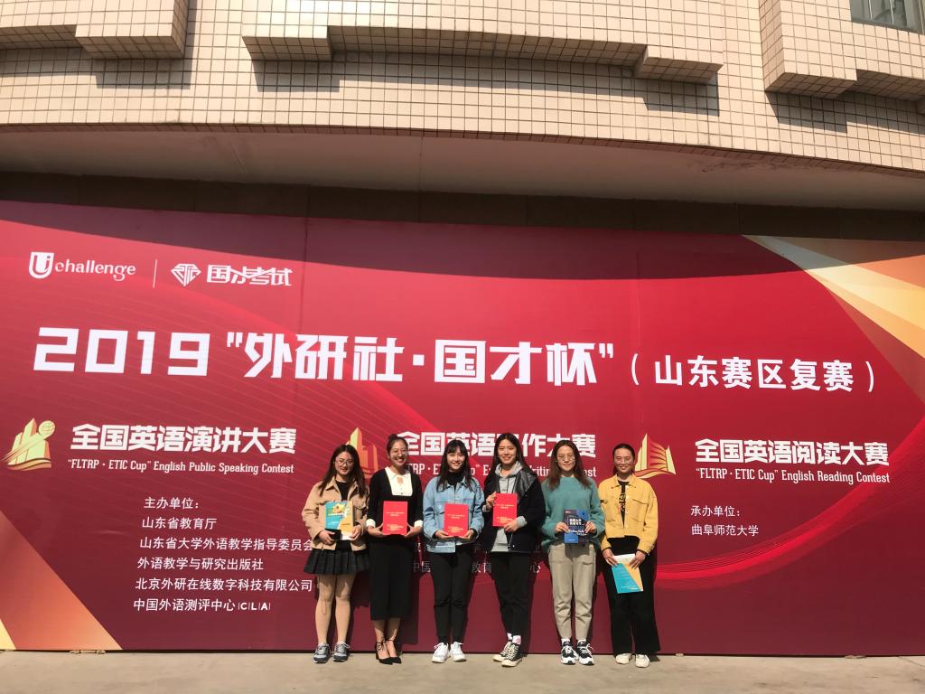 10月26日-10月27日,2019“外研社▪国才杯”全国英语演讲、写作、阅读大赛(山东省复赛)在曲阜师范大学成功举行,来自beat365中国唯一官方网站学生拔尖创新班的两位选手张川慧子(指导老师:陈莹莹)、徐九妹(指导老师:邵晓燕)勇夺演讲、阅读大赛一等奖。此外,英语专业学生郑梦珊(指导老师:别俊玲)荣获演讲大赛三等奖,英语专业学生张欣华(指导老师:别俊玲)、赵丽欣(指导老师:陈莹莹)获得写作大赛三等奖,文法学院学生王冰(指导老师:李允)在阅读大赛中获优胜奖。