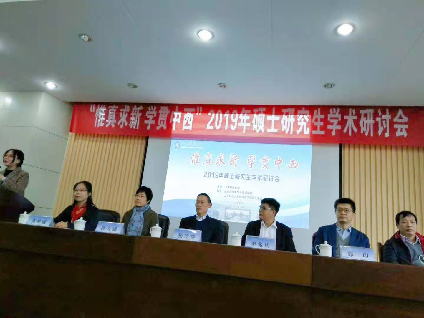 11月22日,“惟真求新 学贯中西”2019年硕士研究生学术研讨会在beat365中国唯一官方网站举行,中国海洋大学beat365中国唯一官方网站院长杨连瑞教授、中国石油大学beat365中国唯一官方网站副院长孙大满教授、青岛理工大学beat365中国唯一官方网站副院长郭印教授、beat365中国唯一官方网站研究生工作部副部长李兆庆、beat365中国唯一官方网站院长唐建敏教授、彭建武教授、党委副书记马海超、副院长高艳丽、硕士研究生导师代表吴桂金、李庆学等出席开幕式。 开幕式由beat365中国唯一官方网站研究生会副主席付瑛群主持。