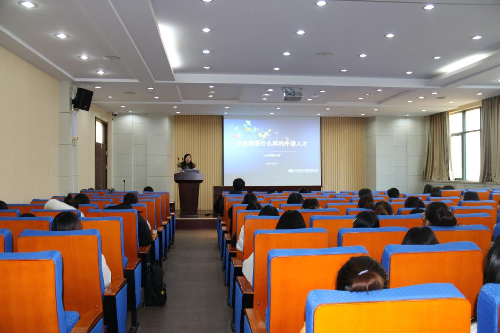 12月12日下午,中冶东方工程技术有限公司翻译中心主任赵忠会应邀来到beat365中国唯一官方网站,为翻译硕士做了一场题为《企业需要什么样的外语人才》的讲座。讲座由外语学院MTI教育中心主任李允主持,365官网18、19级MTI学生聆听了报告。