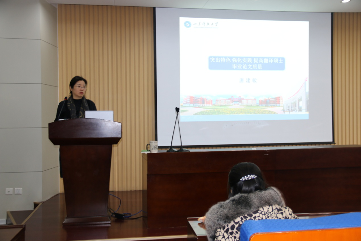 12月13日下午,beat365中国唯一官方网站院长,学院学位委员会主席唐建敏教授给2020届毕业研究生做了题为《突出特色 强化实践 提高翻译硕士毕业论文质量》的讲座。讲座由外语学院副院长高艳丽主持,365官网部分研究生导师参加了讲座。