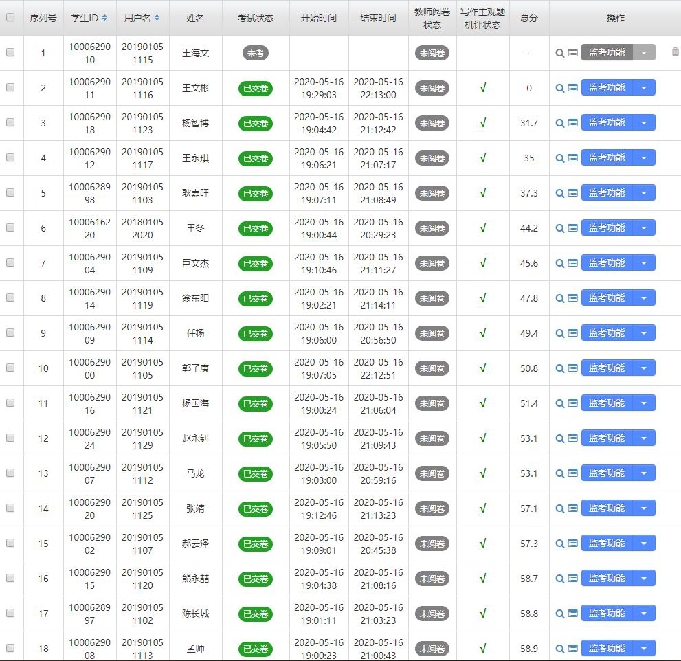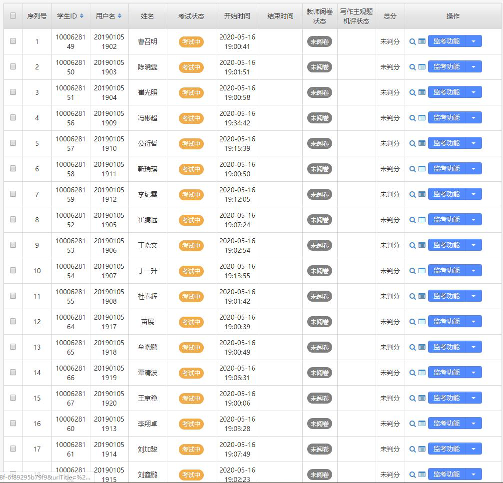 教师监控学生考试情况