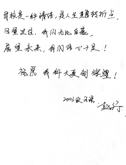 最后,与会校友纷纷留下对母校、对一众学弟学妹们、对校友会未来发展的祝福,全体与会人员进行了合影留念。