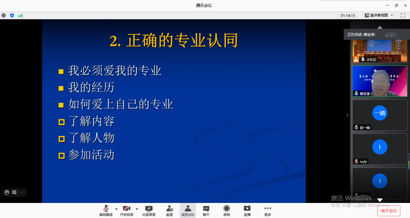 蔡金亭教授发表了题为“对研究生阶段专业学习过程的建议”的主旨发言,从入学专业认识、专业学习特点、专业课程时间平衡、与导师相处技巧及毕业论文撰写与答辩等方面,给在读研究生提出了中肯的建议,有助于提高研究生进快转换身份角色提高专业学习的成效。