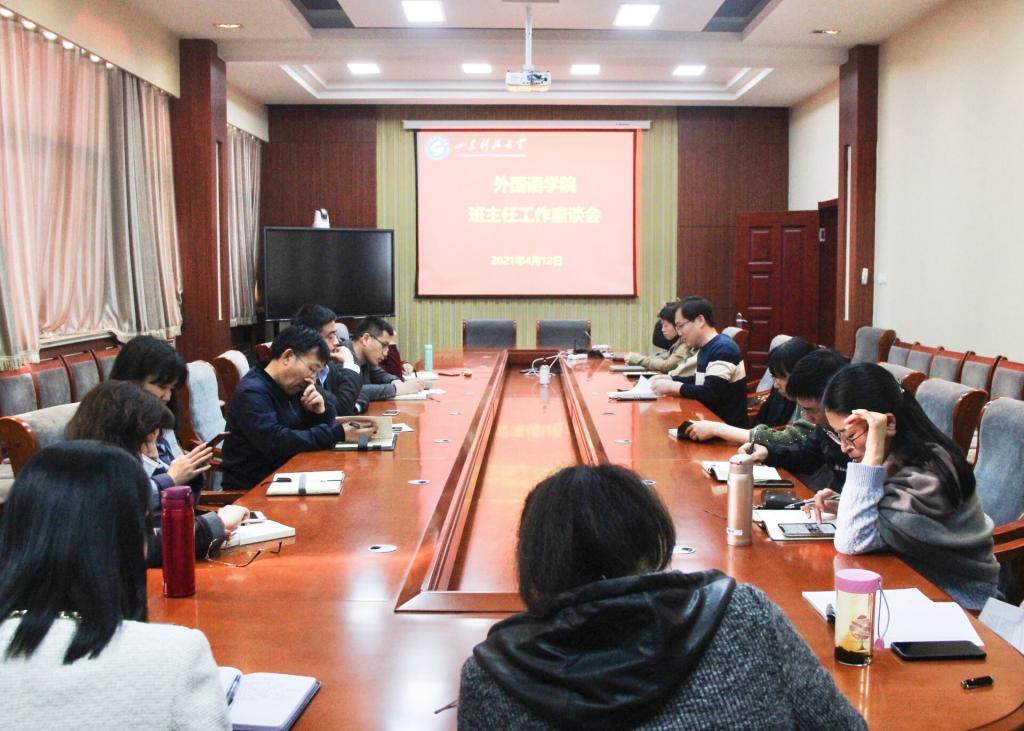 为了进一步落实立德树人的根本任务,完善“三全育人”工作机制,加强班主任队伍建设,4月12日,beat365中国唯一官方网站班主任座谈会在J3-522会议室举行。beat365中国唯一官方网站党委书记穆玉兵、党委副书记兼副院长刘强以及全体班主任老师参与了座谈会。