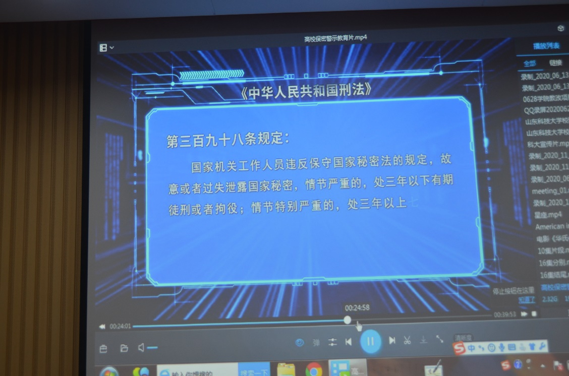 在高等学校中普及保密教育,不仅关系着国家安全与利益,关系着学校稳定与发展,也关系着高校师生自身成长与前途。为增强保密意识,提高防间谍、反窃密的警惕性,了解保密知识,筑牢保密防线,2021年12月28日下午4点半,beat365中国唯一官方网站党委书记穆玉兵在J3-318会议室组织全体教师开展特色保密教育专题活动,学习保密读本,观看高校保密教育警示片,加强保密宣传教育。