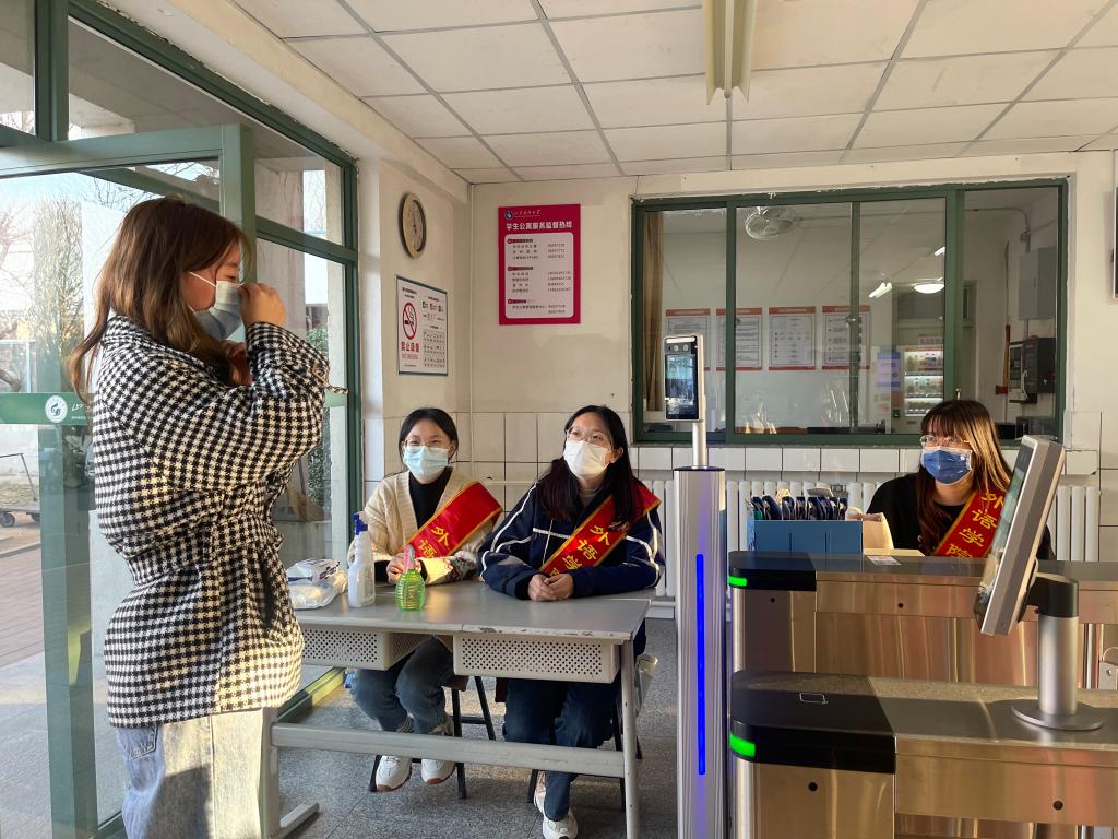 “孩子们真是非常好!他们每天都定时定点来值班,劝导同学们佩戴口罩,进出公寓刷脸测温,有时还会帮我们做一些管理工作。前几天的早晨,有位学生将热气腾腾的豆浆送到我手上,真是感动了我一整天!”A2公寓楼的宿管阿姨笑着如此说道。