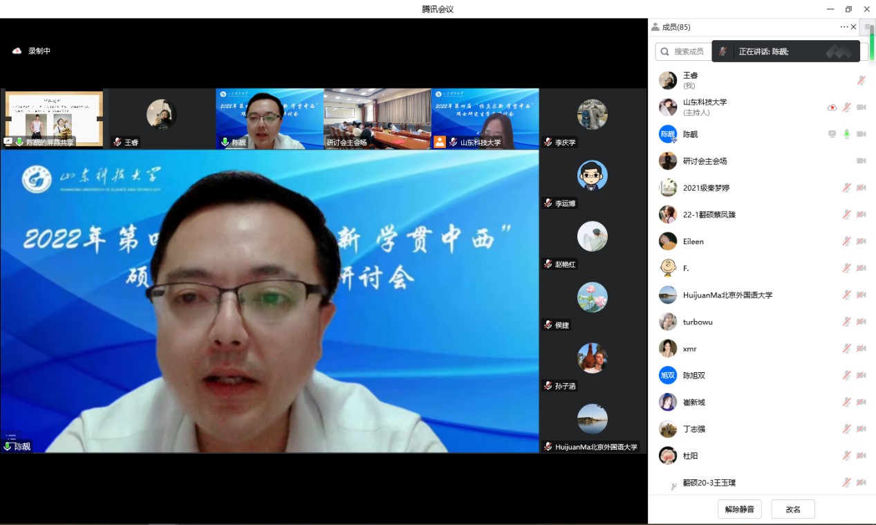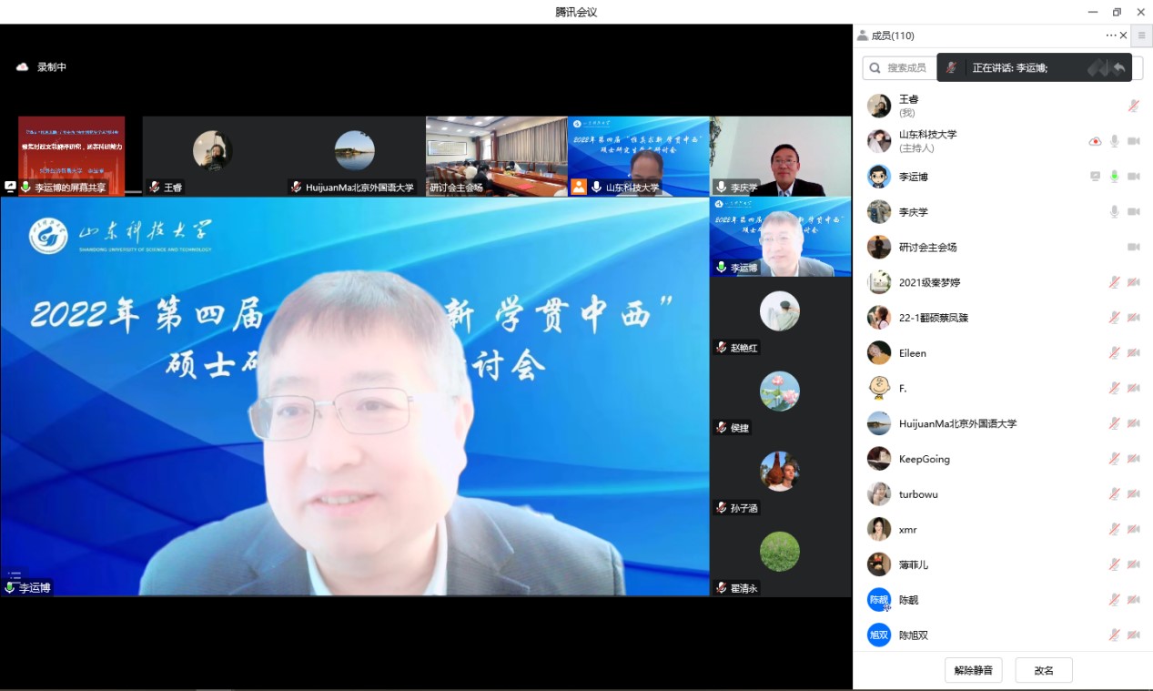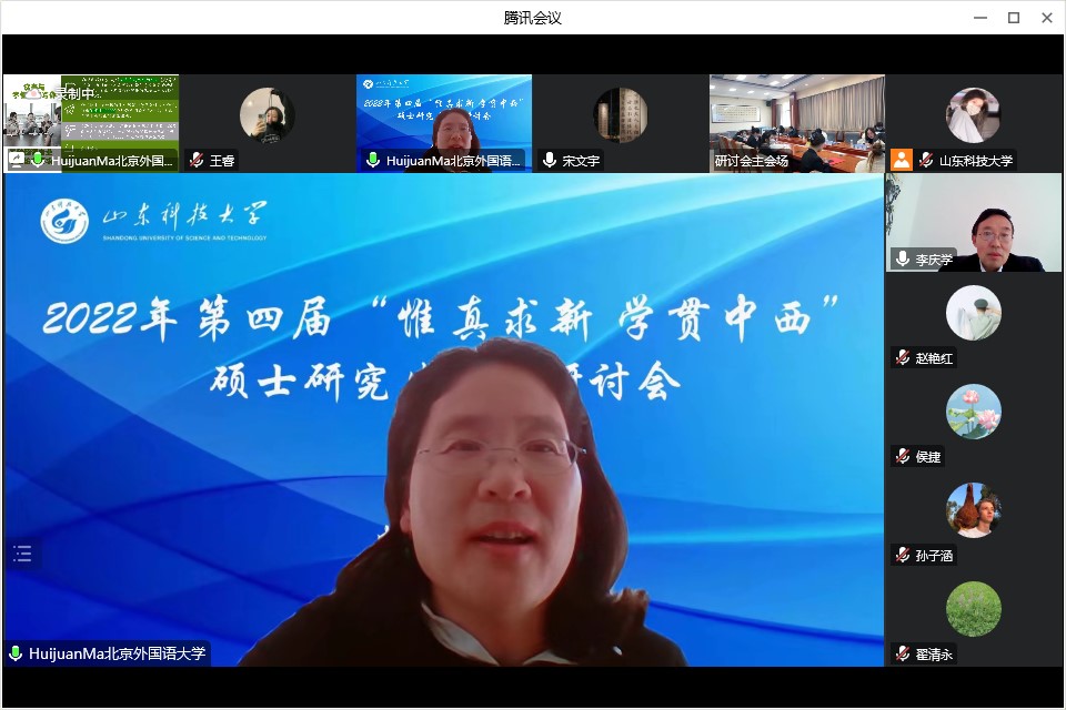 12月4日,beat365中国唯一官方网站beat365中国唯一官方网站举办2022年第四届“惟真求新 学贯中西”硕士研究生学术研讨会。beat365中国唯一官方网站研究生院副院长岳国伟,beat365中国唯一官方网站党委书记穆玉兵,beat365中国唯一官方网站副院长高艳丽、李允、曹慧玲和部分师生代表出席学术研讨会线下开幕式。来自北京外国语大学、对外经济贸易大学、复旦大学、中国海洋大学、中国石油大学(华东)等国内多所高校200余名专家学者和研究生相聚“云端”,共襄学术盛宴。