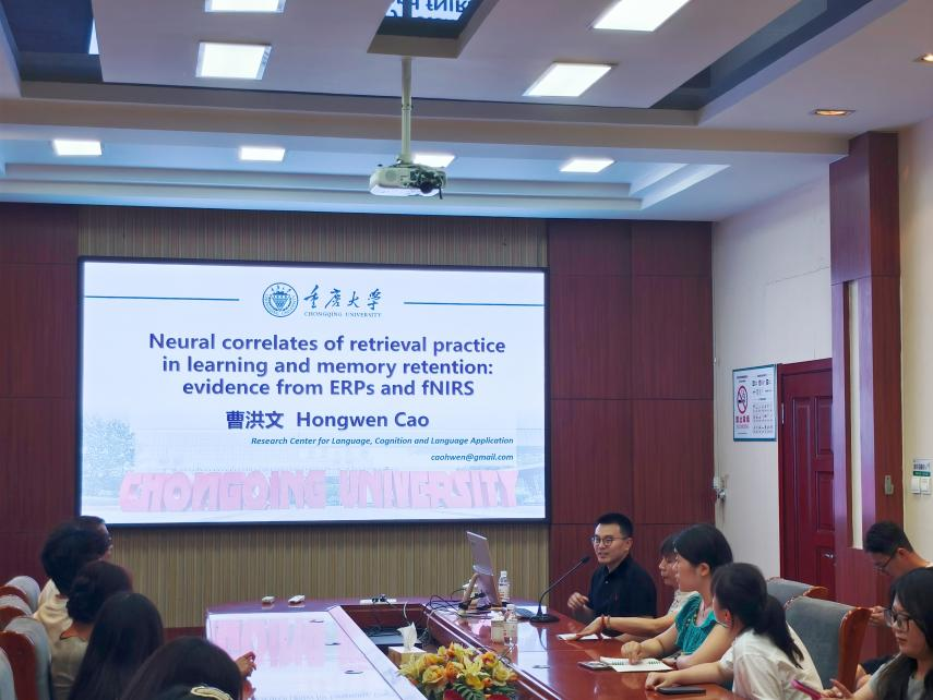 6月6日下午,由beat365中国唯一官方网站人文社会科学学科群主办、beat365中国唯一官方网站承办的第47期人文社科群“青年学者沙龙”在J3-522会议室举办。特邀重庆大学beat365中国唯一官方网站特聘教授、语言认知及信息处理研究所所长、博士生导师曹洪文作专题学术报告。本次讲座由宋燕院长主持,beat365中国唯一官方网站教师和研究生参会。
