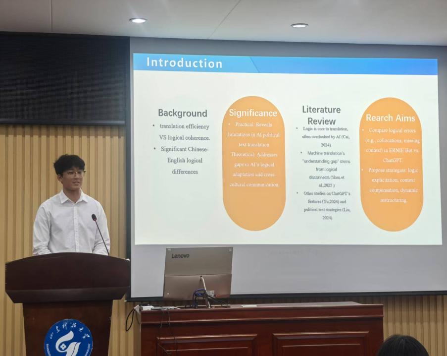决赛现场气氛热烈。来自不同学院的参赛选手们精神饱满,自信从容,在五分钟内以流利英语深入阐述研究成果。他们精准阐释学术术语,构建严谨逻辑框架,并辅以生动的图表,将复杂的研究话题转化为通俗易懂、引人入胜的学术报告,充分展现了扎实的专业素养、敏锐的学术洞察力与出色的英语表达能力,体现了大学生在学术研究中既热情洋溢又严谨求实的精神风貌。