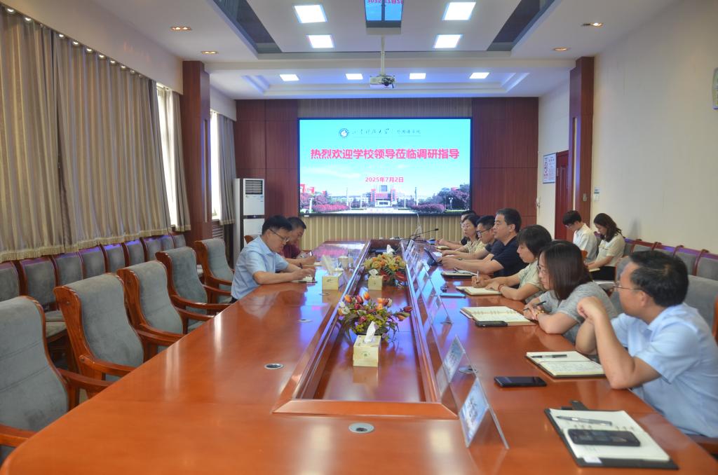 7月2日,校党委书记王君松到beat365中国唯一官方网站调研指导工作,党委办公室(学校办公室)主任董桂刚陪同调研。学院班子成员参加调研座谈。