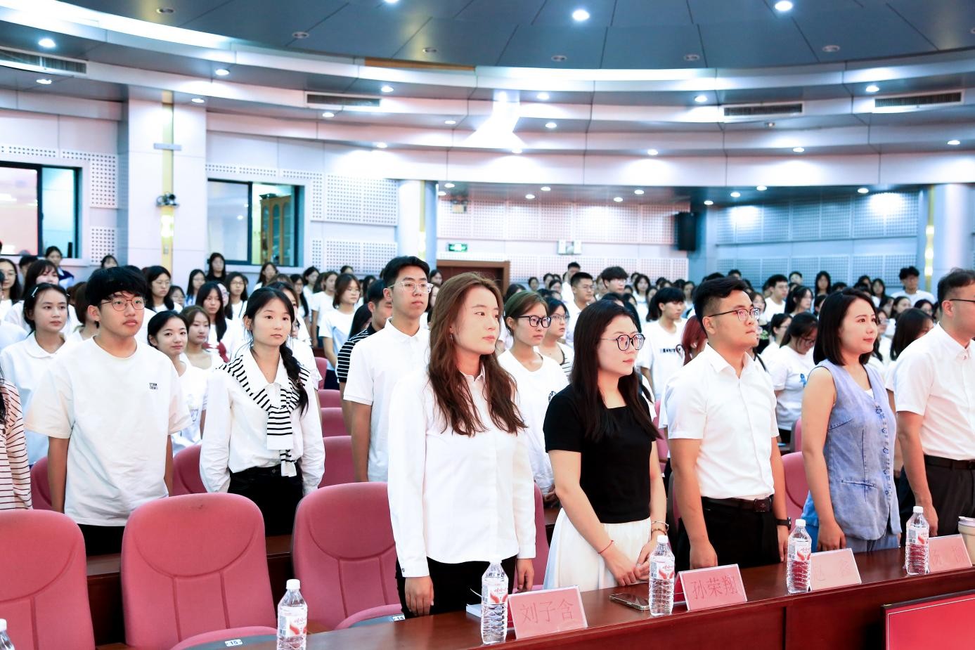 会议在庄严的国歌声中拉开序幕,现场全体人员肃立,齐唱国歌。