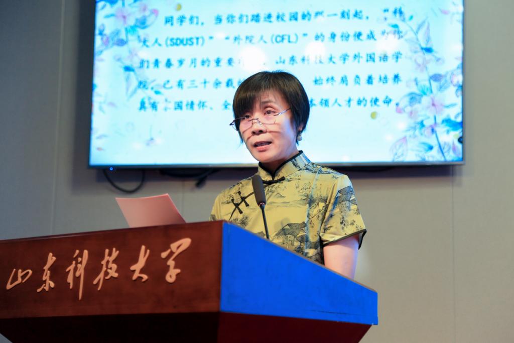 教师代表刘文明向新生致以热烈欢迎与祝贺。刘文明老师介绍了学院深厚的学术底蕴、优秀师资及开放包容的氛围,代表全体教师表达为新生成长成才保驾护航的决心。同时从“向内探求,认清自我”“向外探索,认识世界”“修身立德,书写青春”三方面对新生提出期望,鼓励新生以“山科外院人”新身份开启新征程。