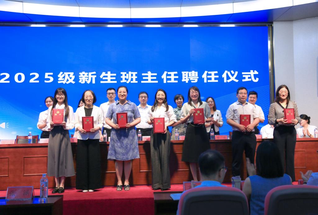 最后,学院党委副书记兼副院长刘强书记宣读《关于聘任张涵等7位教师为2025级本科班班主任的通知》,学院领导们为2025级本科生班主任颁发聘书。