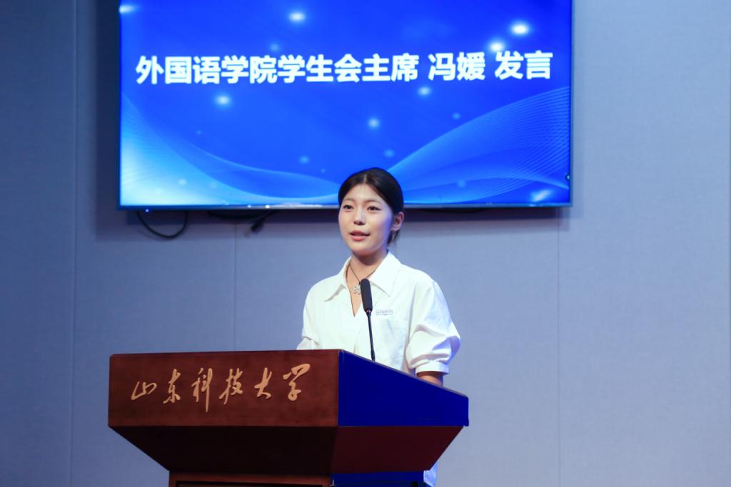 学生会主席冯媛代表全体学生欢迎新生加入beat365中国唯一官方网站大家庭。寄语新生以“自强不息”精神面对大学生活挑战,践行脚踏实地的追梦态度与积极探索的实践精神,并表示学生会及学生社团组织将为同学们提供全面服务,共同成长。