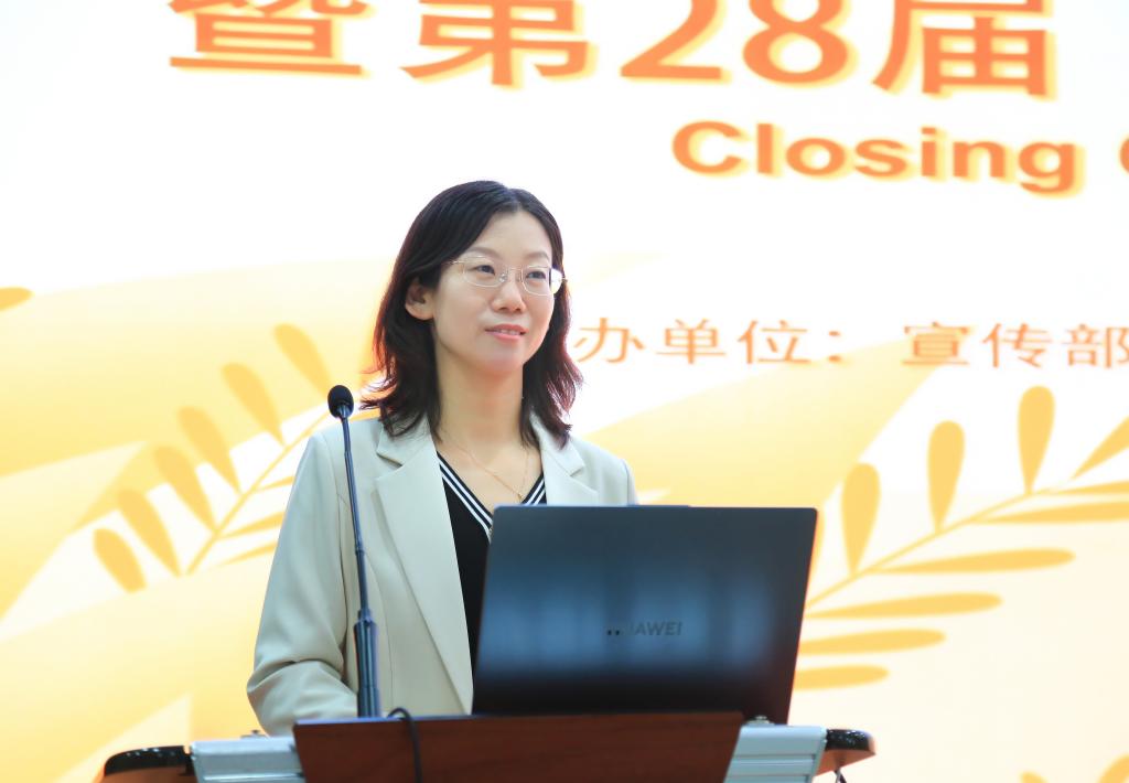 校团委书记高一丹致闭幕词,向大学生学术英语成果展示会及本届外语文化艺术节的成功举办表示祝贺,对外语文化艺术节品牌化建设及beat365中国唯一官方网站“外语+”平台建设成效予以充分肯定。高一丹强调,外语文化艺术节要强化价值引领,在深化交流互鉴中增强文化自信,鼓励学生用外语讲好中国故事,传播好中国声音;要突出学术创新,加强跨学科与跨文化研究,主动打破学科壁垒,碰撞出更多智慧的火花;要注重成果转化,把在系列赛事中锤炼出的外语应用能力转化为推动校园文化国际化建设、服务地方经济社会发展的真本领。