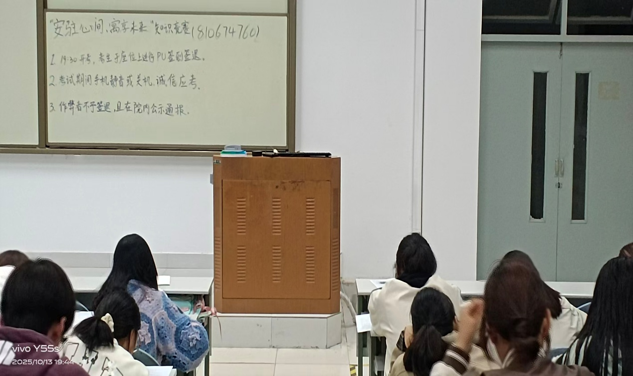 竞赛内容聚焦宿舍安全、卫生规范与违纪处分等重点领域,全面覆盖校园常见安全风险点,重点考察学生对安全知识的掌握和运用能力。竞赛现场秩序良好,参赛学生沉着应答,展现出扎实的知识储备与良好的综合素养。权益服务部工作人员认真履行监考职责,规范电子设备管理,并通过PU平台实行签到签退,保障了竞赛的公平性与有序性。赛后,工作人员开展集中阅卷与成绩复核工作,确保各环节准确、透明。