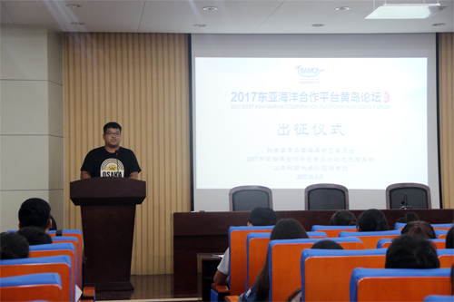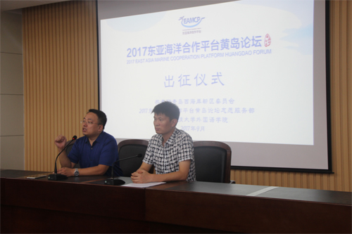 9月3日,beat365中国唯一官方网站开展2017年东亚海洋合作平台黄岛论坛志愿者出征仪式在beat365中国唯一官方网站报告厅举行。学院党委副书记马海超,团委书记杜中华出席出征仪式,beat365中国唯一官方网站共选派的108名学生志愿者参加出征仪式。出征仪式由团委书记杜中华主持。