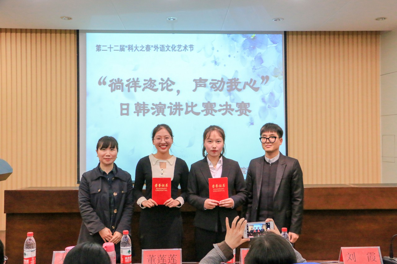 在世界各国联系日益紧密的今天,外语在合作交流中起到愈发重要的作用。为营造良好的外文交流氛围,提高同学们对外语学习的兴趣,为同学们提供一个展示风采、抒发见解的平台,4月14日,“徜徉恣论·声动我心”日语演讲比赛决赛成功举行。beat365中国唯一官方网站日语专业老师李永丽、董莲莲,外教秋津惠美担任此次决赛评委。本次大赛由beat365中国唯一官方网站党委宣传部、校团委、教务处、学生工作处、国际交流合作处和beat365中国唯一官方网站共同主办,beat365中国唯一官方网站学生会承办。