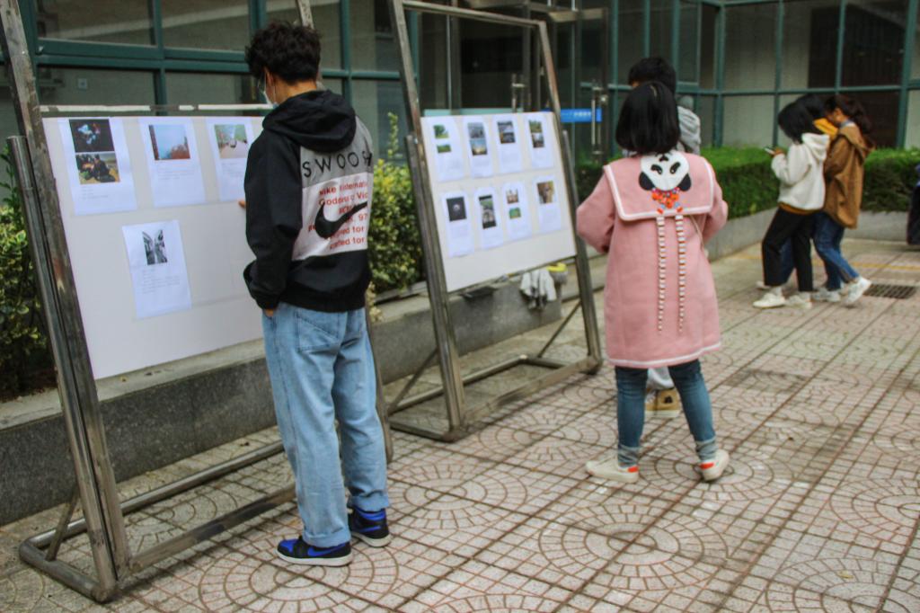 本次活动共收到有效作品投稿24件,经过评审团的商议,最终选出14件优秀作品进行展示。创作者们用照片传递幸福,呼吁青年们将故事化为行动。作品展示当天,若干优秀摄影作品引来了学生们的驻足参观。茅草房屋与现代厂房,泥泞小路与繁华大道,庄稼麦田与高楼大厦……这些巨大的时代差异,微缩在展板上一张张黑白相片与七彩相片中,用图片形式讲述今昔生活的对比感受,从一个个分享的生活细节中展现小康生活的幸福指数。