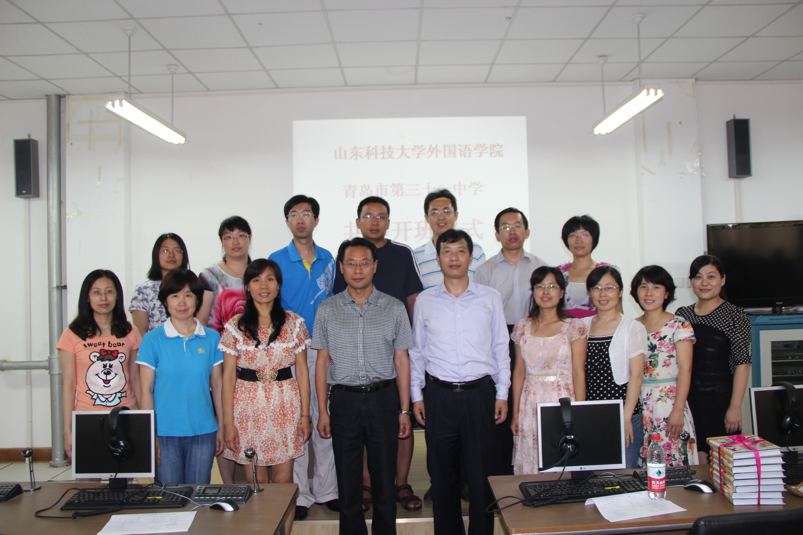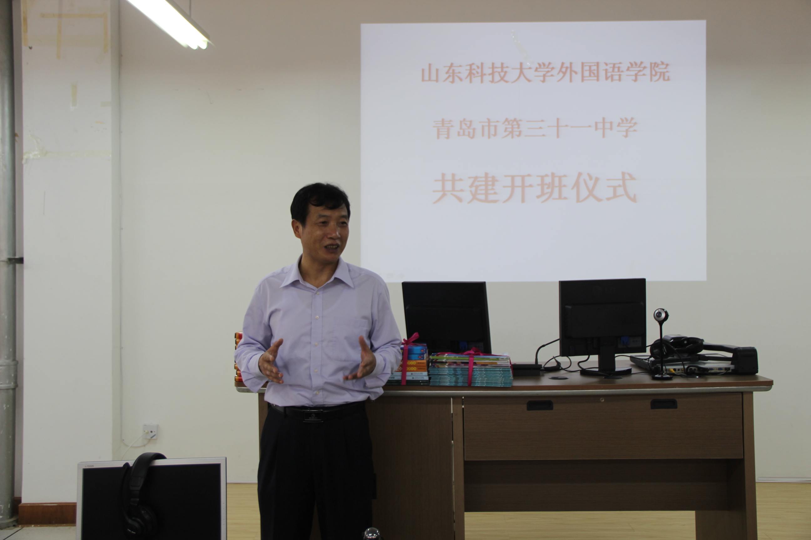 7月4日,beat365中国唯一官方网站实验学校——青岛第三十一中学师生一行共55人在副校长邹明佳带领下来365官网考察交流。上午九时,双方共建开班仪式在beat365中国唯一官方网站同传实验室举行,仪式由副院长宋燕主持。院长彭建武首先致辞,对三十一中师生表示热列欢迎,肯定了双方合作共建的深远意义,并代表学院向三十一中捐赠了部分音像资料。副院长宋燕详细介绍了本次交流活动的日程安排,并预祝活动圆满成功。