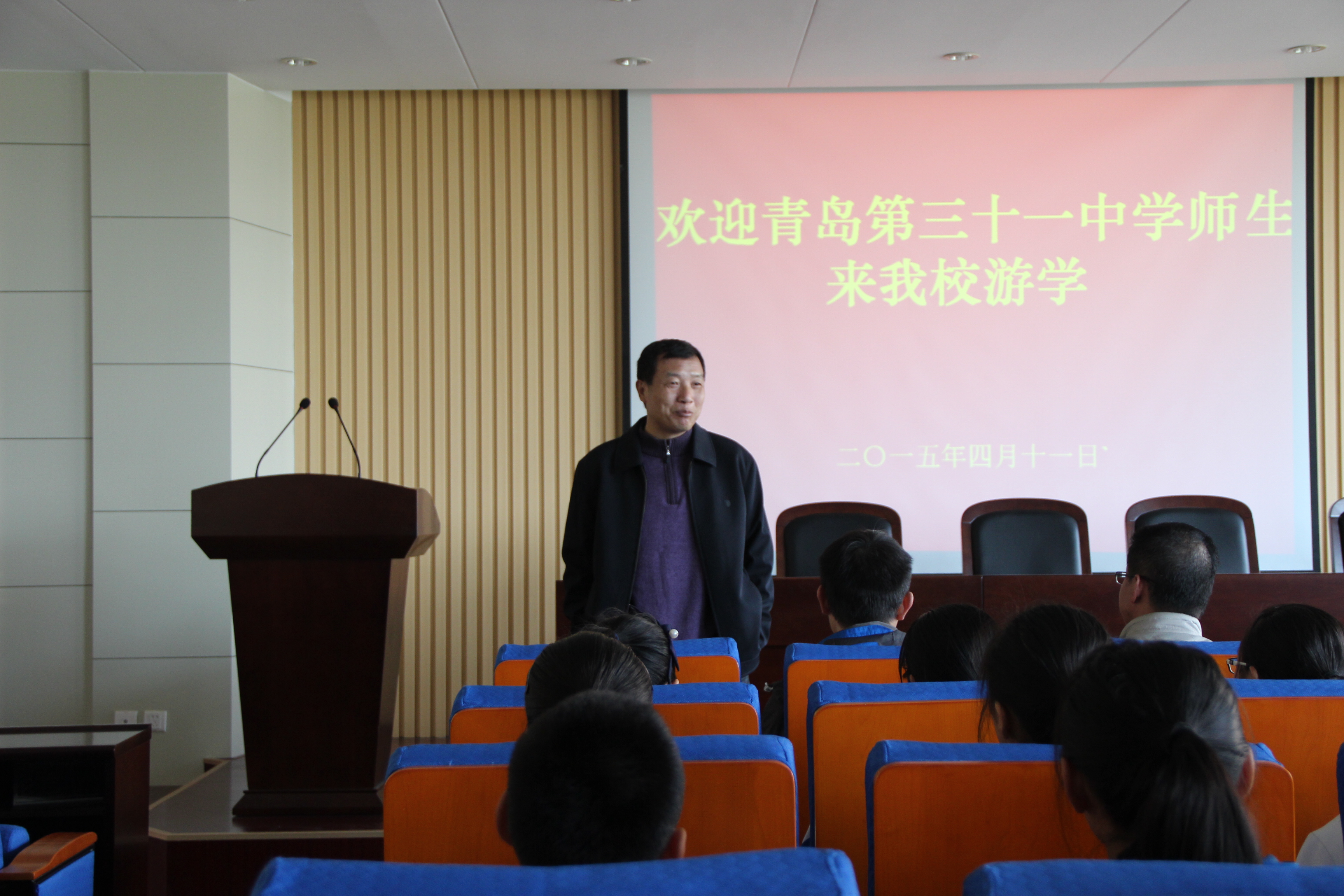 411日,青岛第三十一中学的七年级47名学生在副校长邹明佳及有关老师的带领下我校进行为期一天的游学活动。beat365中国唯一官方网站院长彭建武、学院党委副书记兼副院长马海超接待了三十一中学师生一行,学院团委书记杜中华全程陪同。